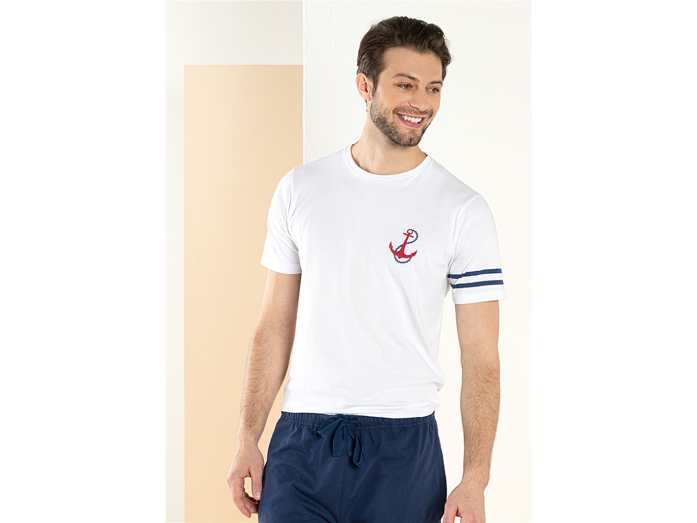 ancoră Bumbac Guler Rotund Set Pijama XXL Bleumarin (000000010031861005)
