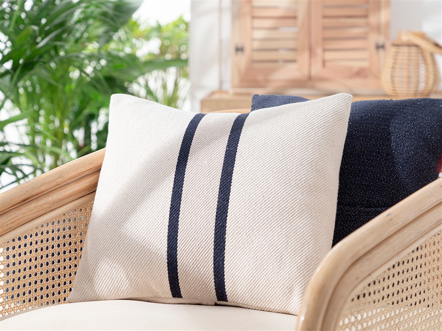 Banded Țesătură Pernuță 45x45 cm Bej - Bleumarin. (000000010032482002)