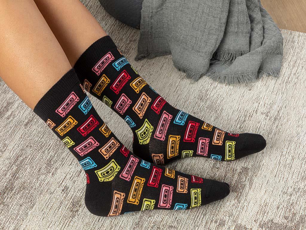 Cassette Tape Bumbac Femeie Ciorapi Standard Negru (000000010029924001)