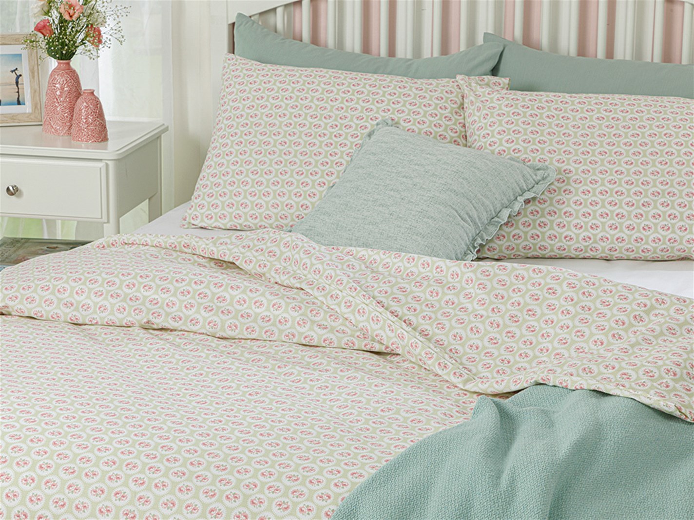 Cireșă mică Cu Bumbac King Size Set Lenjerie De Pat 240x220 cm Verde deschis (000000010029851003)