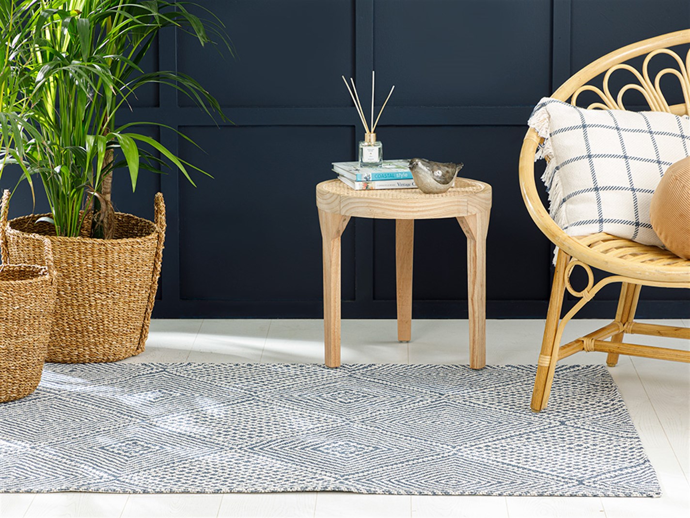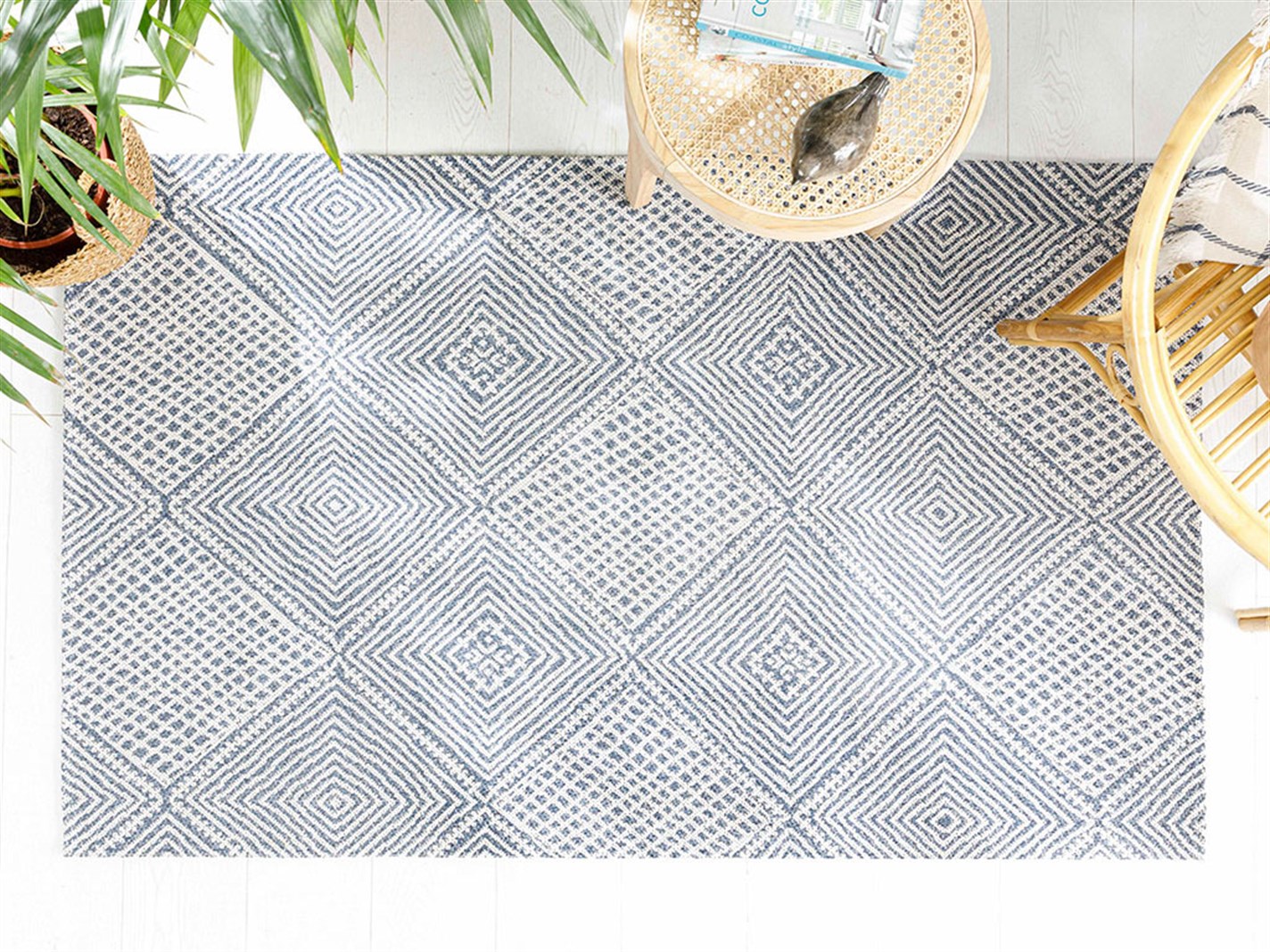 Cotton Geometric Țesut Covor 155*230 Cm Albastru închis (000000010031629004)