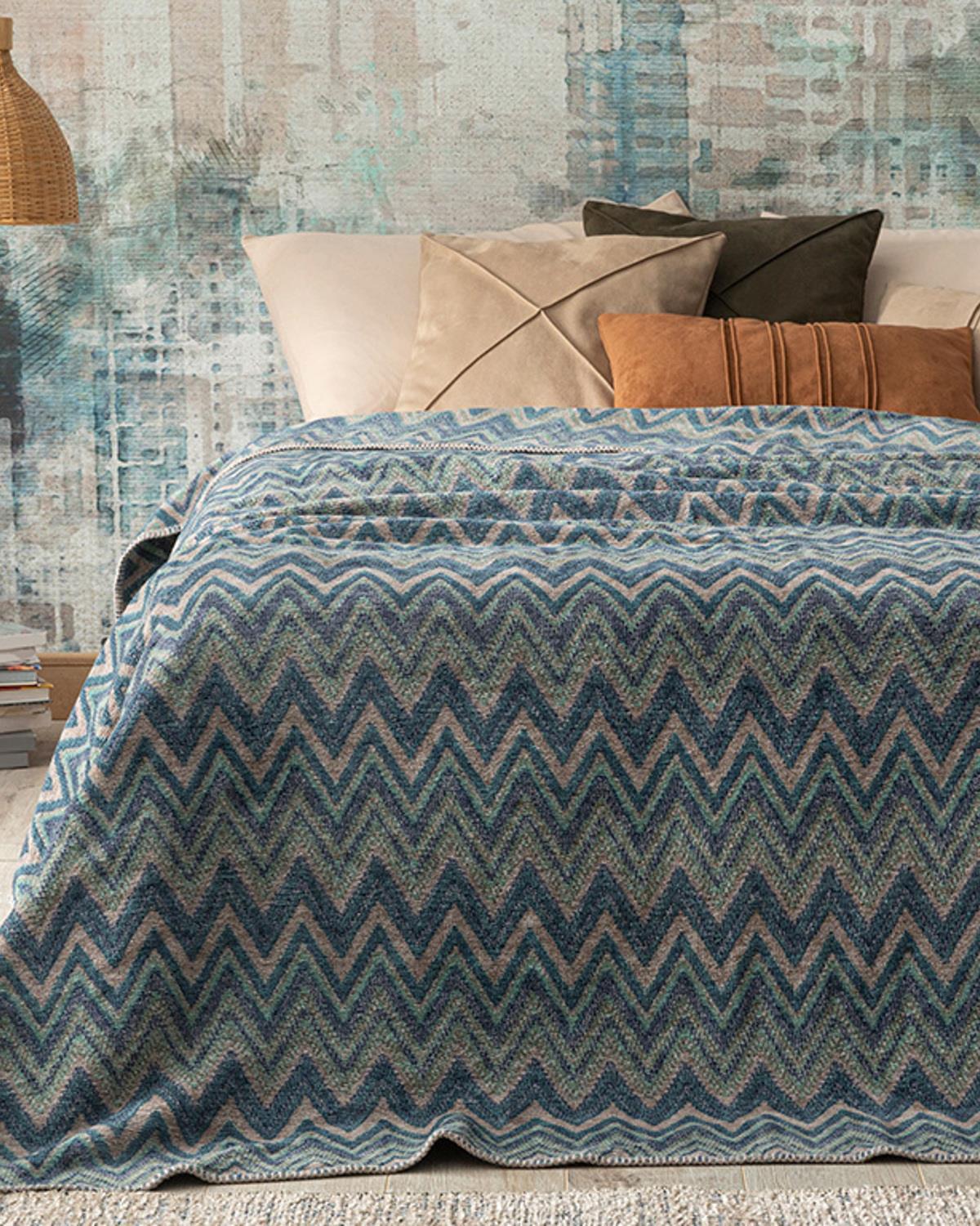 Cult Zigzag Cu Bumbac Single Pătură 150x200 cm Albastru (000000010032538001)