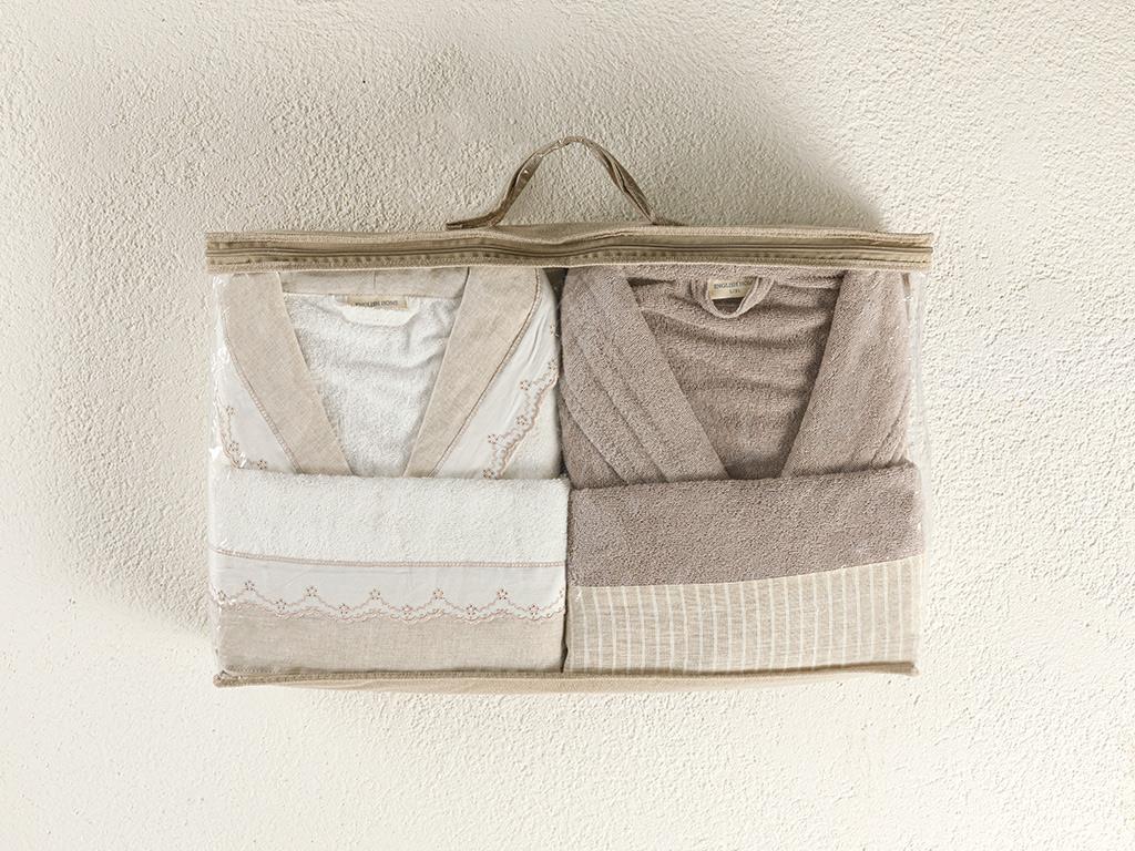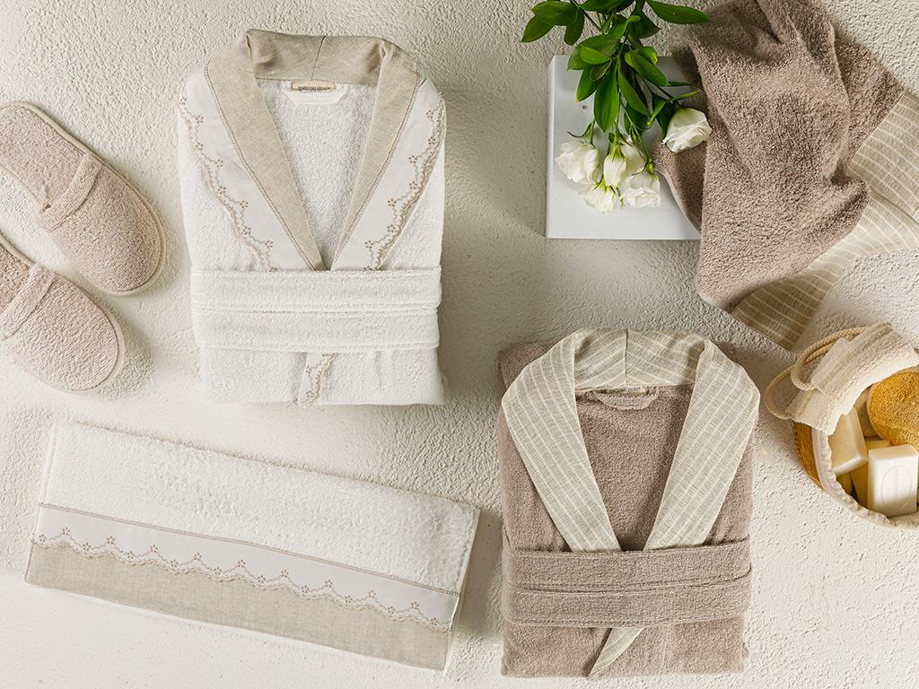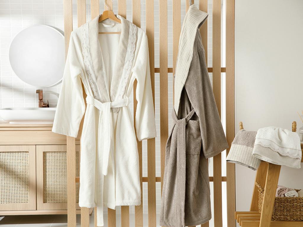 Cut work Cu Feston Cu 4 Piese Set Halat S-M & L-XL Ecru - Bej Închis (000000010032397001)