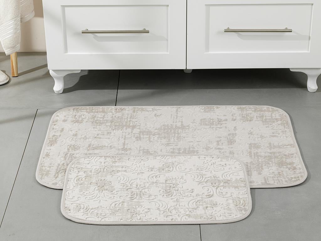 damasc Imprimare La Cald Bază Anti-Alunecare Set Covorașe De Baie 60x90 + 40x60 cm Ecru (000000010031238001)