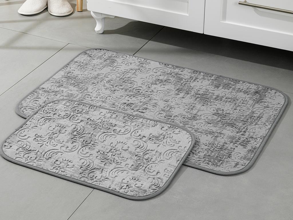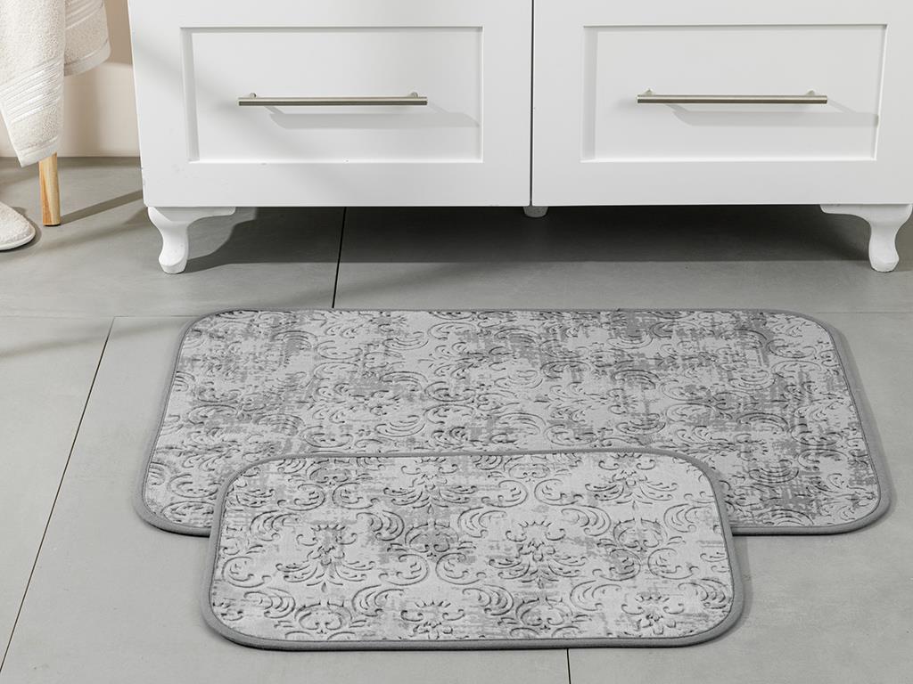 damasc Imprimare La Cald Bază Anti-Alunecare Set Covorașe De Baie 60x90 + 40x60 cm Gri Închis (000000010031238003)