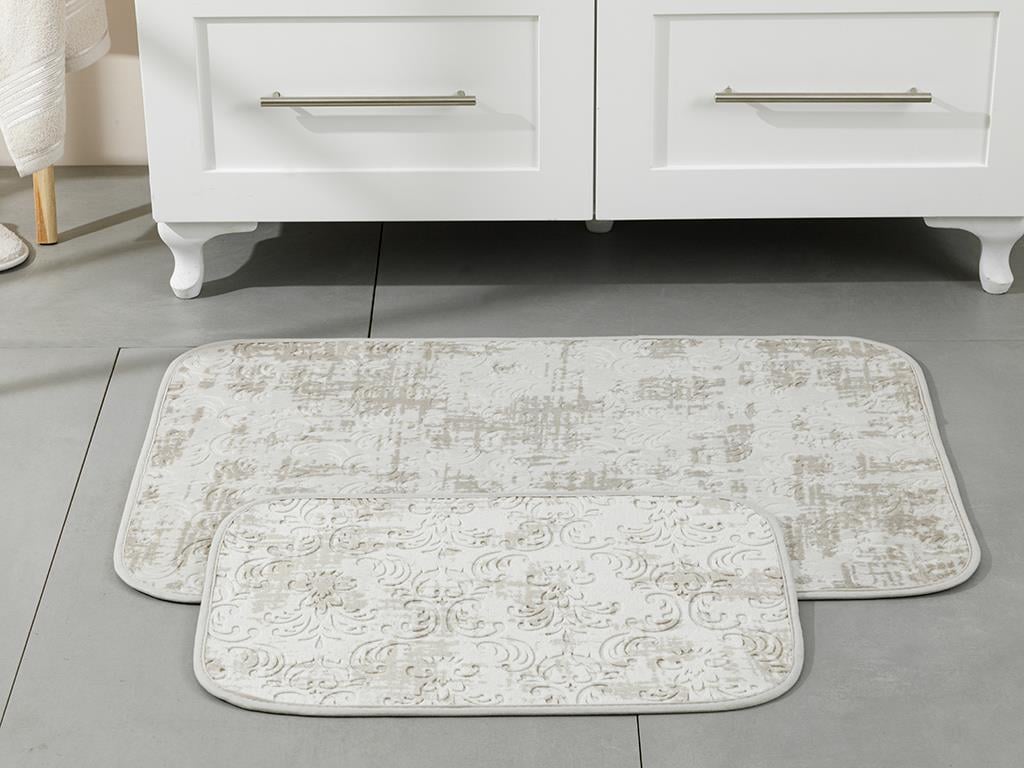 damasc Imprimare La Cald Bază Anti-Alunecare Set Covorașe De Baie 60x90 + 40x60 cm Bej Deschis (000000010031238002)