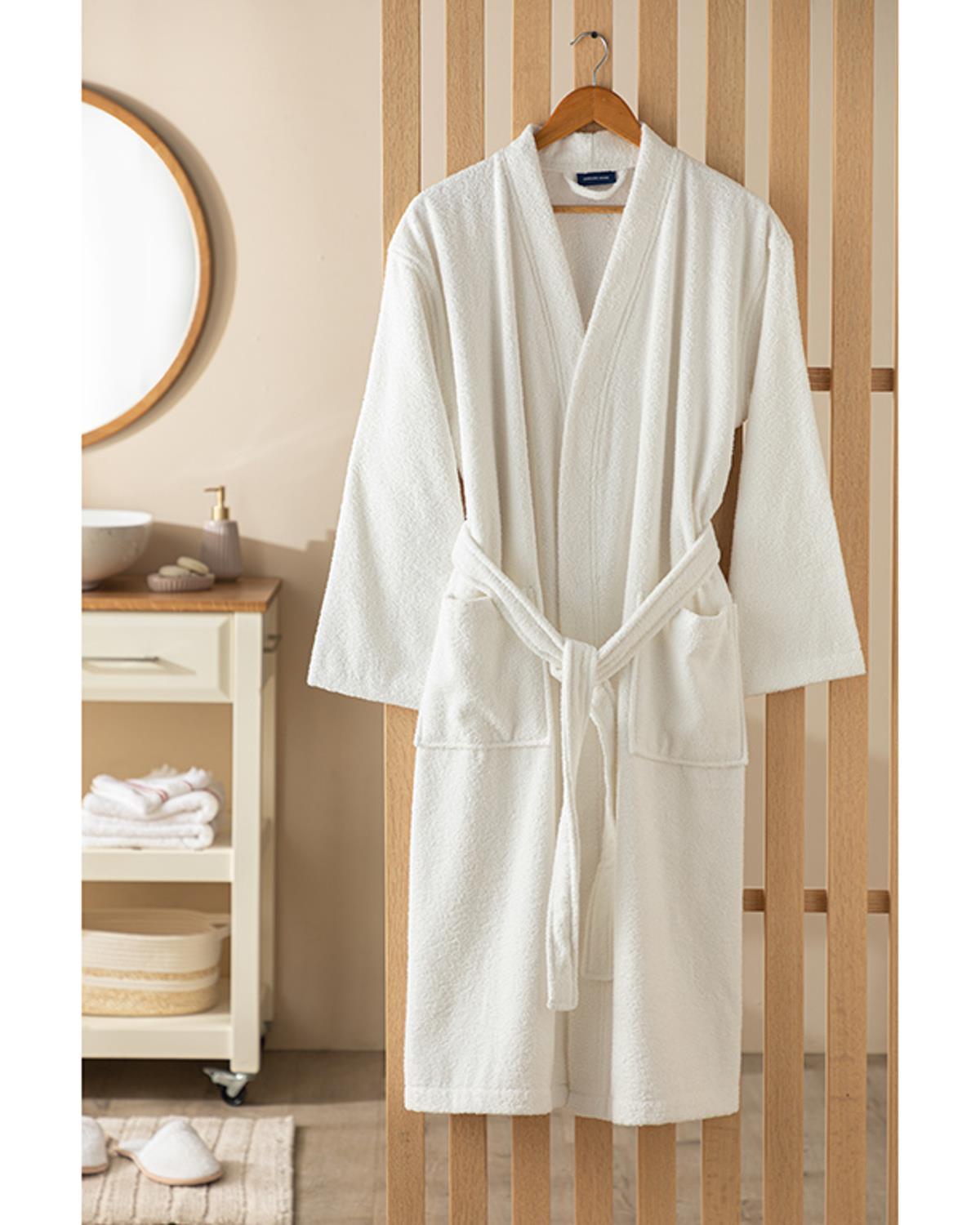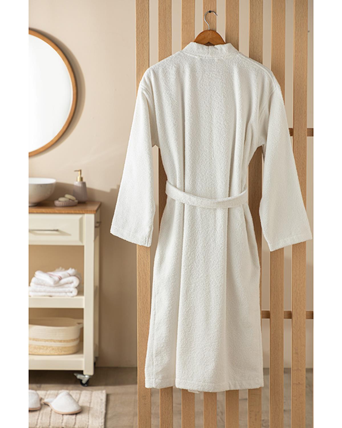 diapozitiv Cu Bumbac Chimono Halat S-M Alb (000000010035743001)