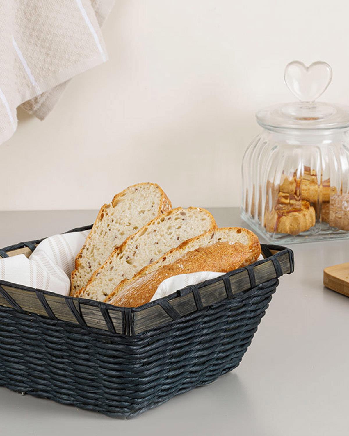 Audrey Straw Square Bread Basket 19x19x9 cm Blue (000000010029576004)