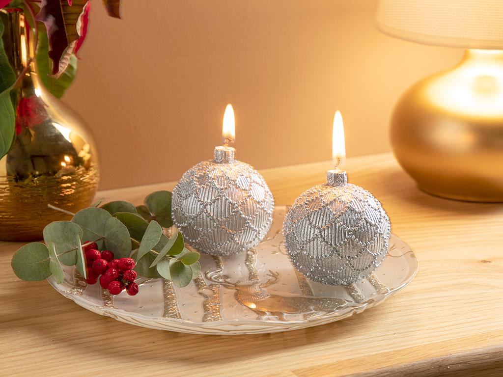 Christmas Ball Candle 7x7x15 cm Silver (000000010032547003)