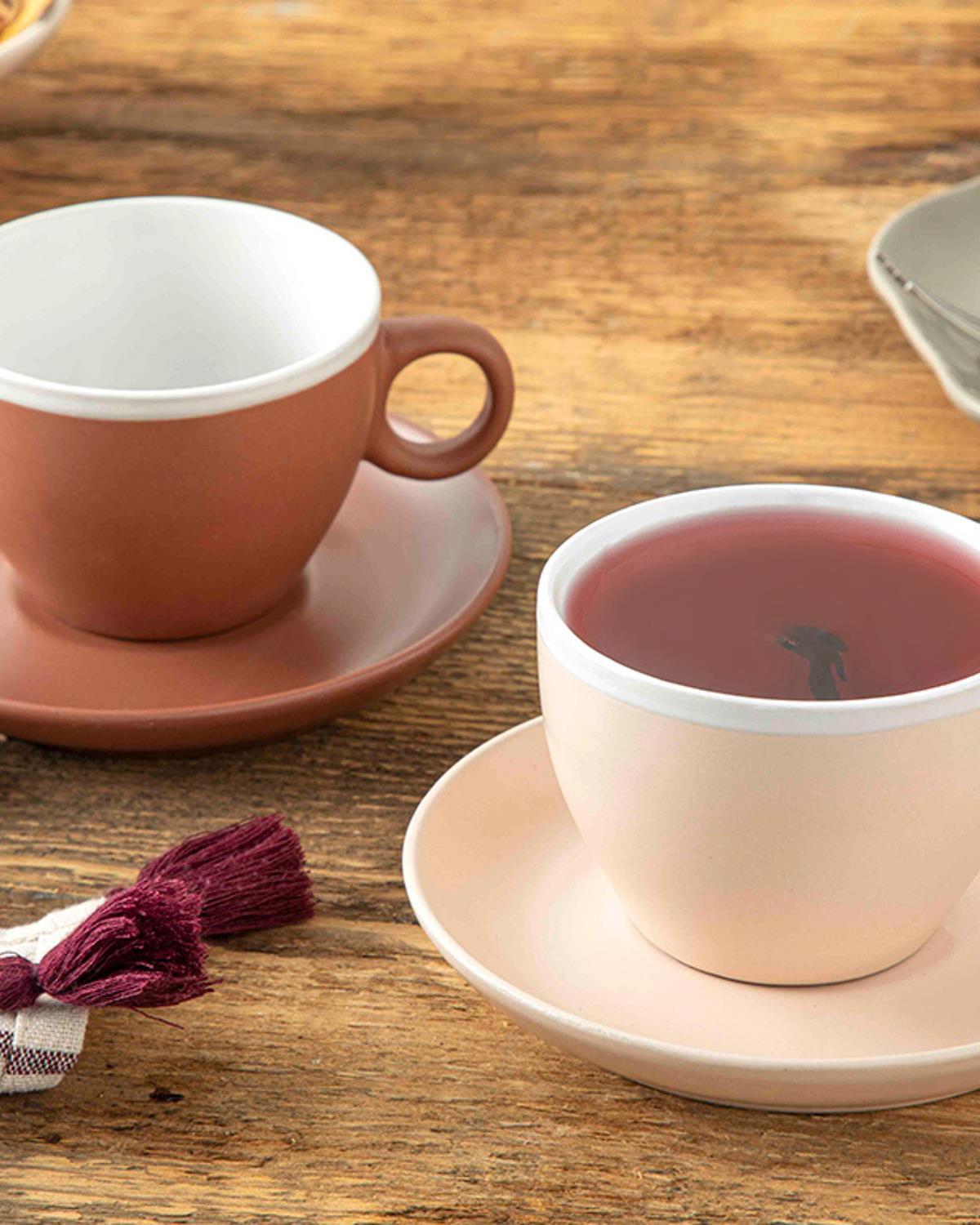Edno Stoneware 4 Parça 2 Kişilik Tea Cup Set 200 ml Coffee - Powder Pink (000000010035550001)