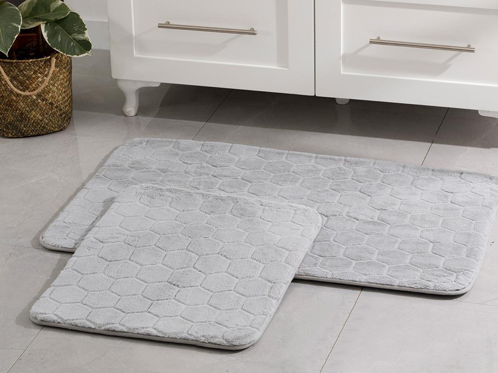 Honeycomb Polyester Bath Mat Set 60x100 - 50x60 cm Gray (000000010029718008)