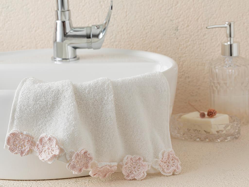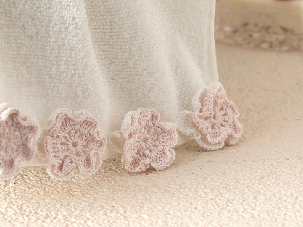 Crochet Flowers Crocheted Hand Towel 30x45 cm Ecru - Powder Pink (000000010031058001)