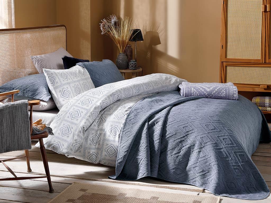Geostitch Cotton King Size Duvet Cover Set Pack 240x220 cm Blue (000000010025974007)