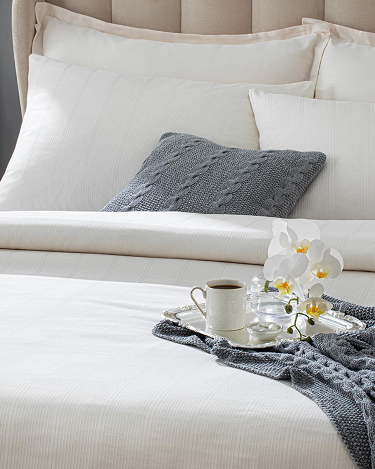Listral Jacquard Striped Cotton Satin Double 4 Pillows-Boxed Plain Sheet Duvet Cover Set 200x220 c (000000010037136003)