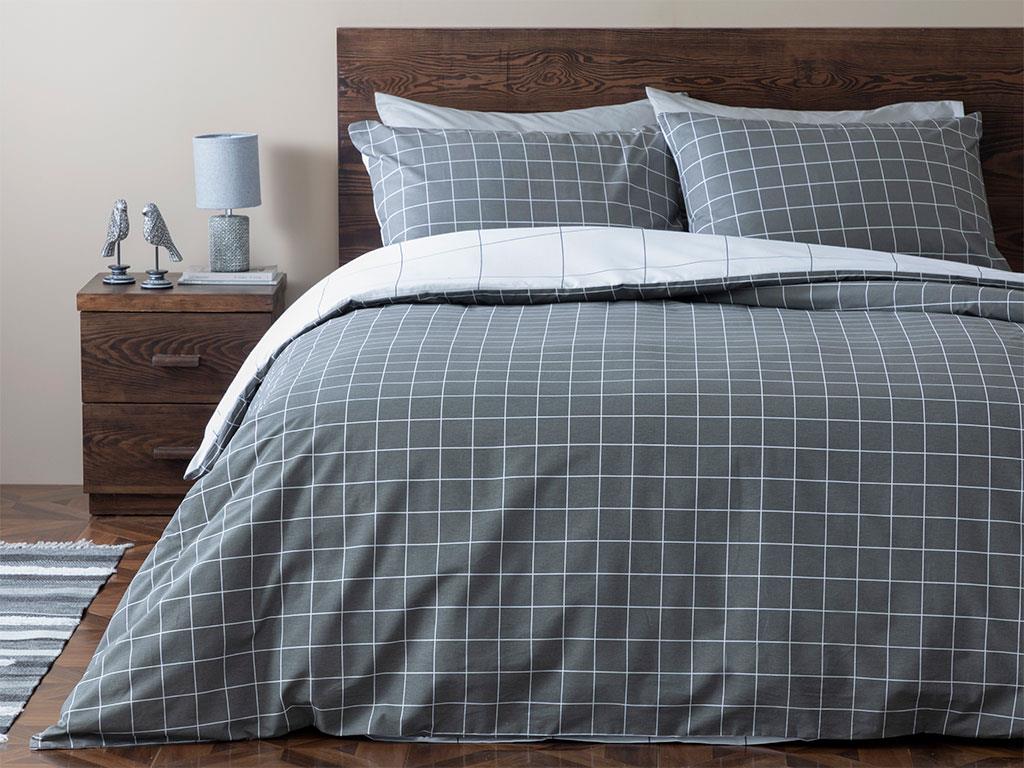 Plain Check Cotton For One Person Duvet Cover Set Pack 160x220 cm Anthracite (000000010029944001)