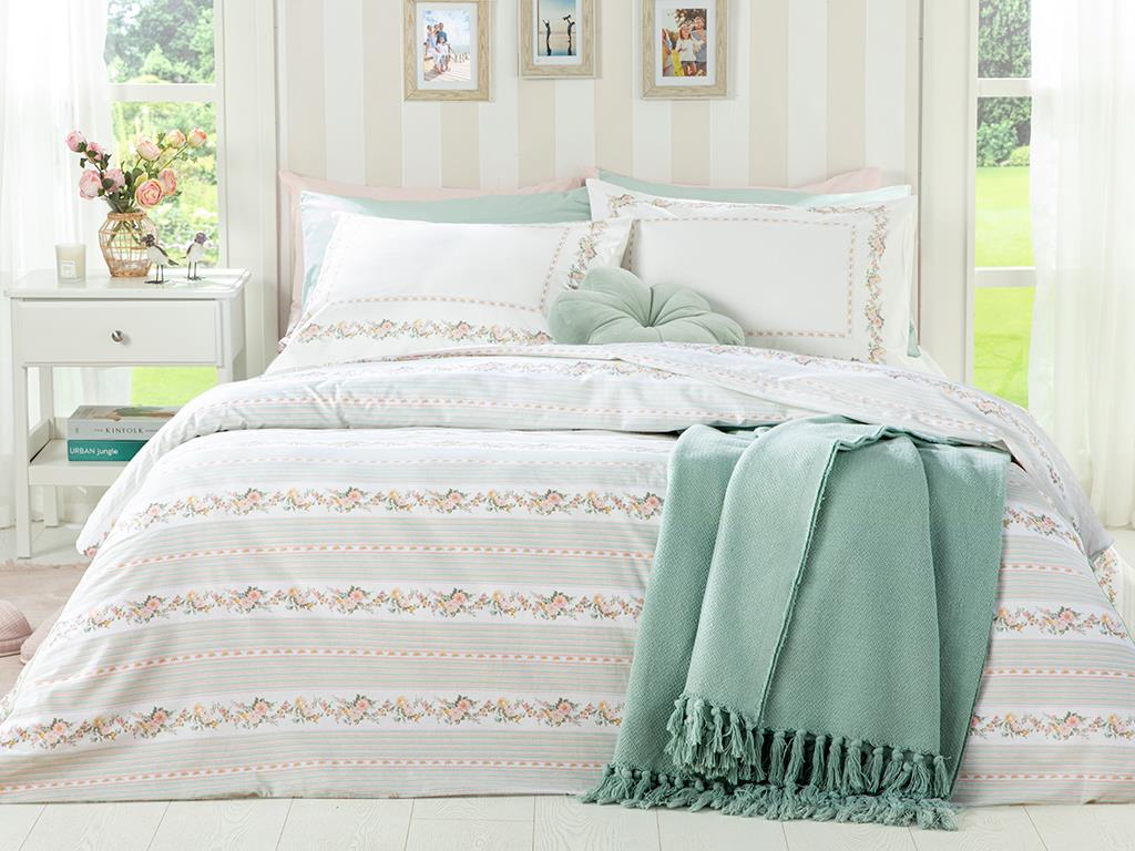Floral Stripe Bumbac Dublu Set Lenjerie De Pat 200*220 Cm Deschideți Seledon (000000010029844002)