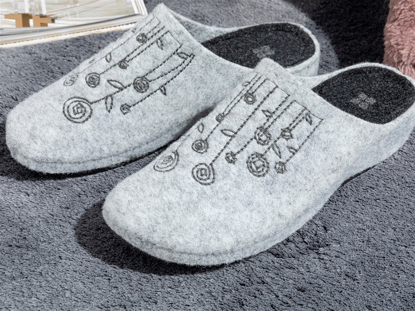 Flori mici Fetru Femeie Papuci De Casă 37 Antracit (000000010032949002)