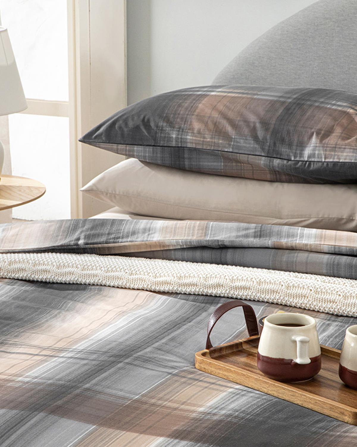 Flowing Plaid Cottony Persoană Dublă Set Lenjerıe De Pat 200*220 Cm Antracit - Bej (000000010036989005)