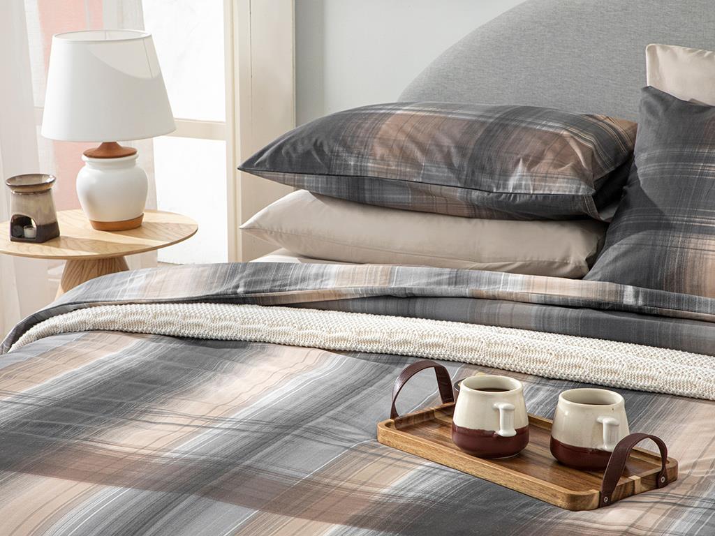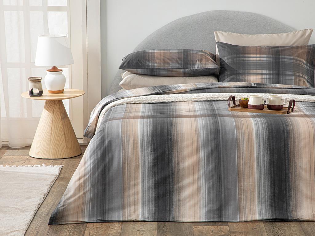 Flowing Plaid Cu Bumbac King Size Set Lenjerie De Pat 240x220 cm Antracit - Bej (000000010036989006)
