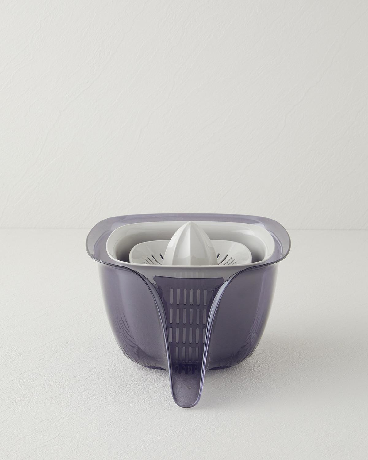 1 adet süzgeç, 1 adet karıştırma kabı, 1 adet limon sıkacağı