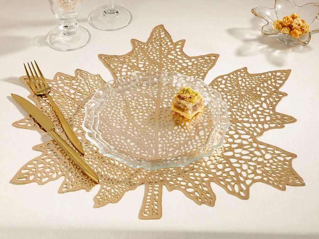 frunze PVC Cu 2 Piese Placemat Masă 42x42 cm Gold (000000010029491001)