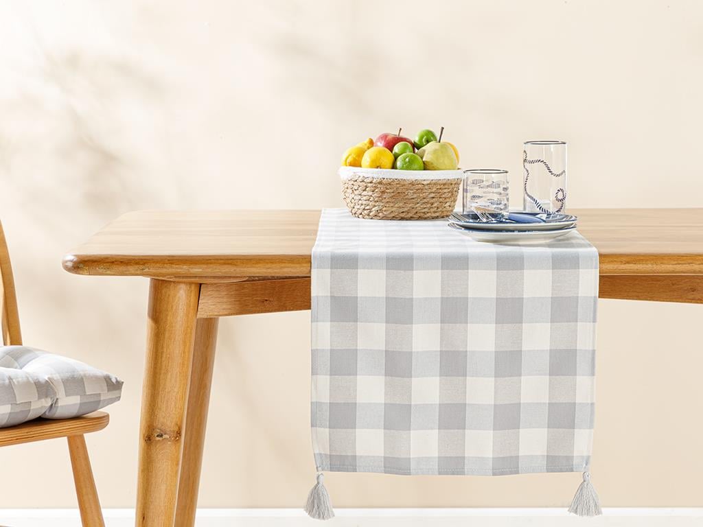 Gingham Bumbac Poliester Cu Ciucuri Ștergar 40x140 cm Gri (000000010032388001)