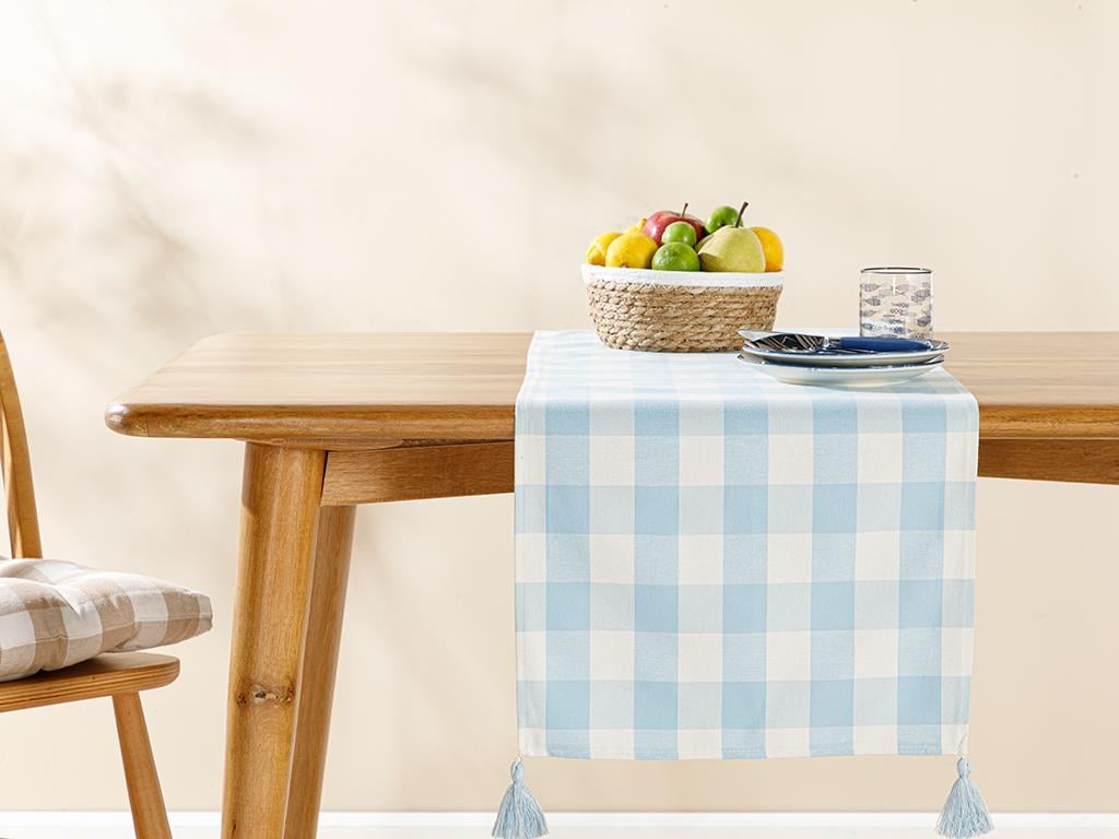 Gingham Bumbac Poliester Cu Ciucuri Ștergar 40x140 cm Albastru (000000010032388004)