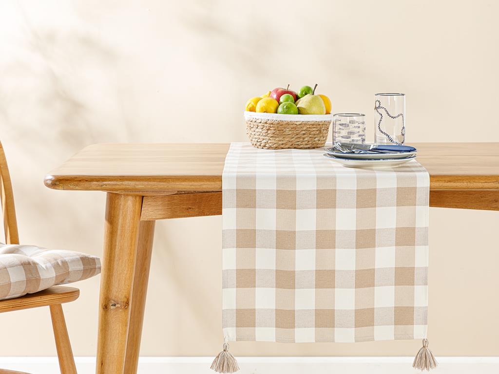 Gingham Bumbac Poliester Cu Ciucuri Ștergar 40x140 cm Bej (000000010032388002)