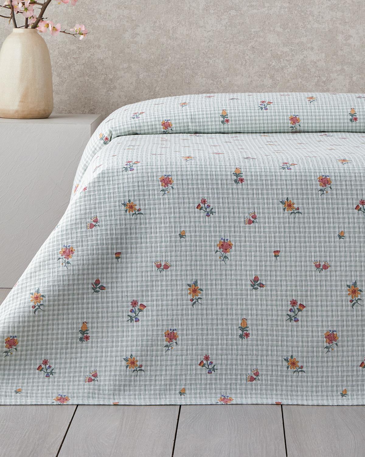Floral Plaid Imprimat Cu Bumbac Double Pătură De Vară 200x220 cm Verde (000000010047576002)