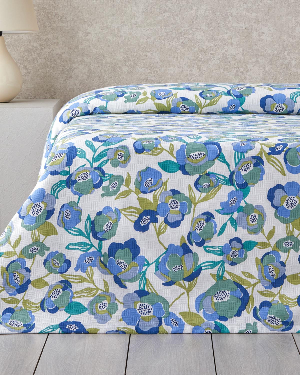 Summer Blooms Imprimat Cu Bumbac Single Pătură De Vară 150x220 cm Albastru (000000010047586001)