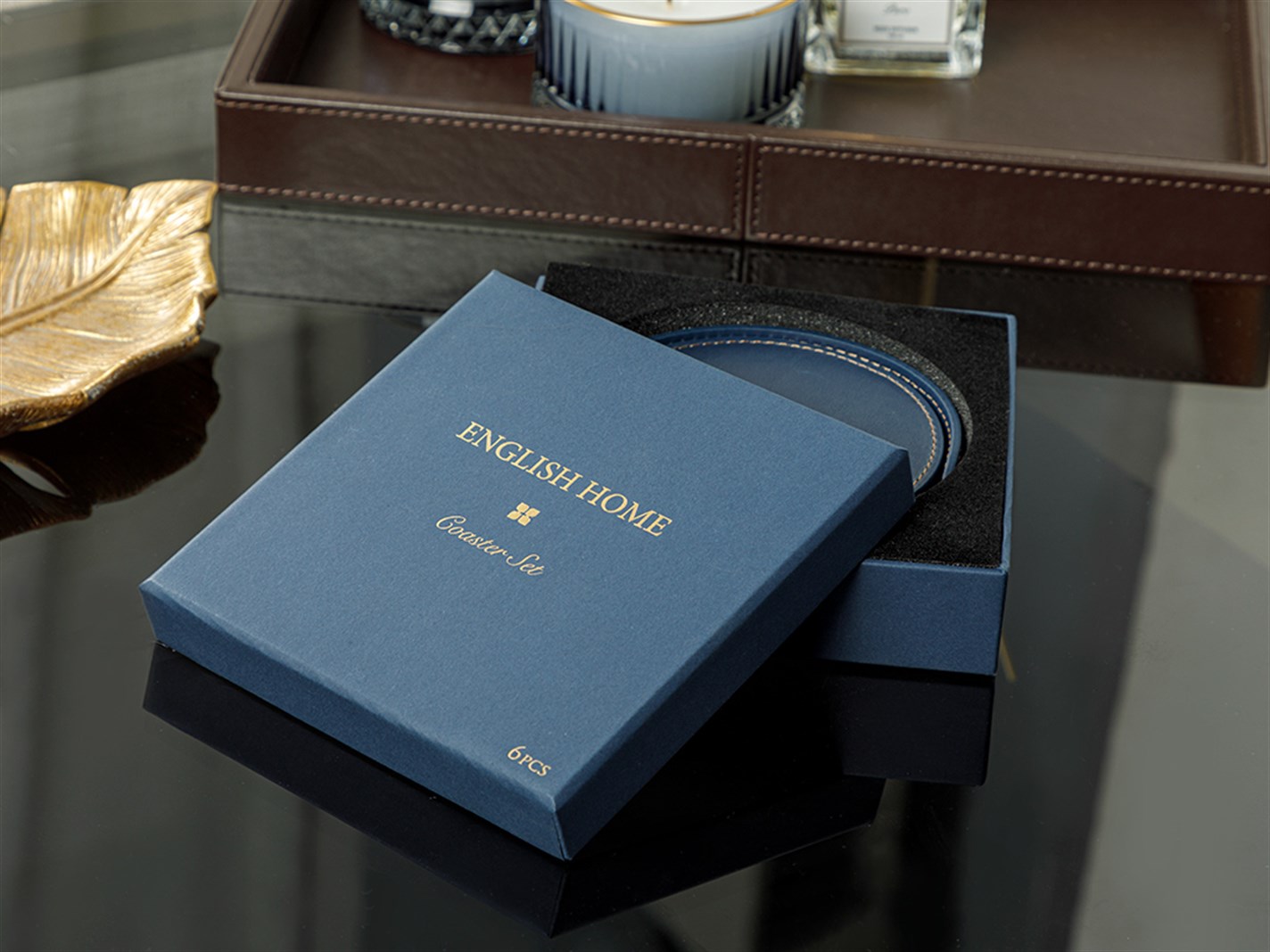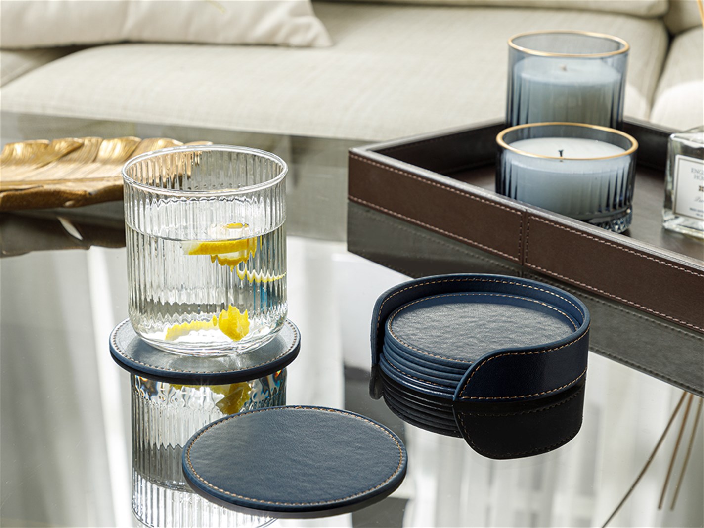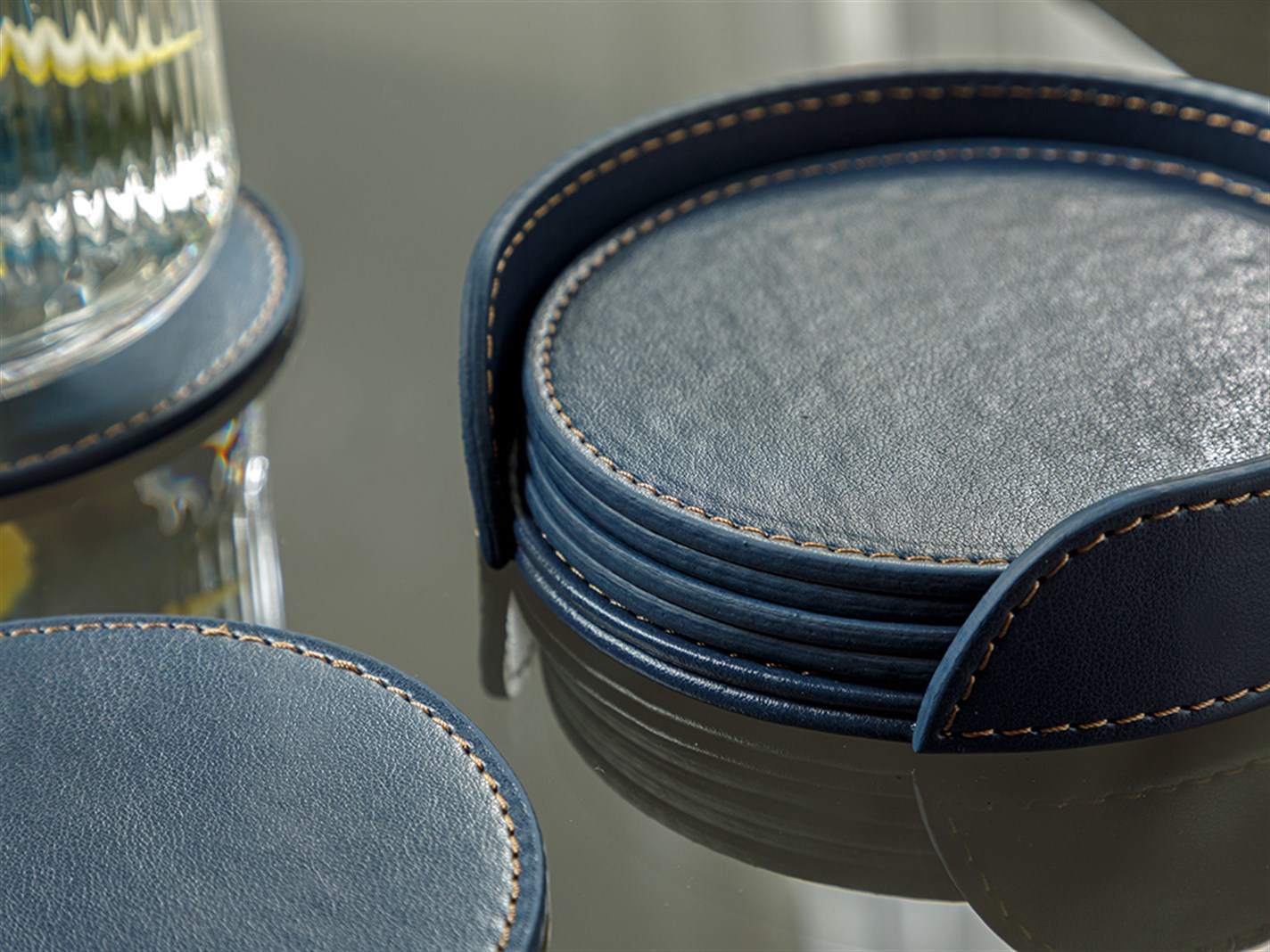 Leather Piele Artificială 6 Piese Coaster Pahare 10 cm Bleumarin (000000010032048002)