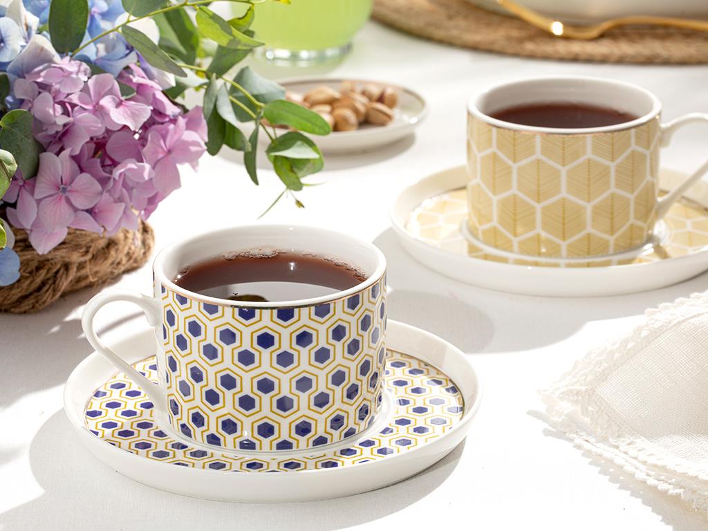Locus Comb New Bone 4 Bucati Pentru 2 Persoane Set Ceștı De Ceaı 220 Ml Galben - Albastru. (000000010031700001)