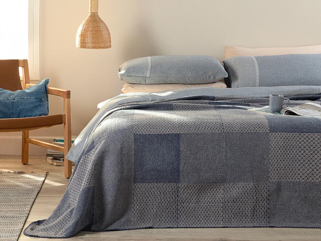 Modern Patch Bumbac Single Pătură 150 x 200 cm Albastru închis (000000010032803001)