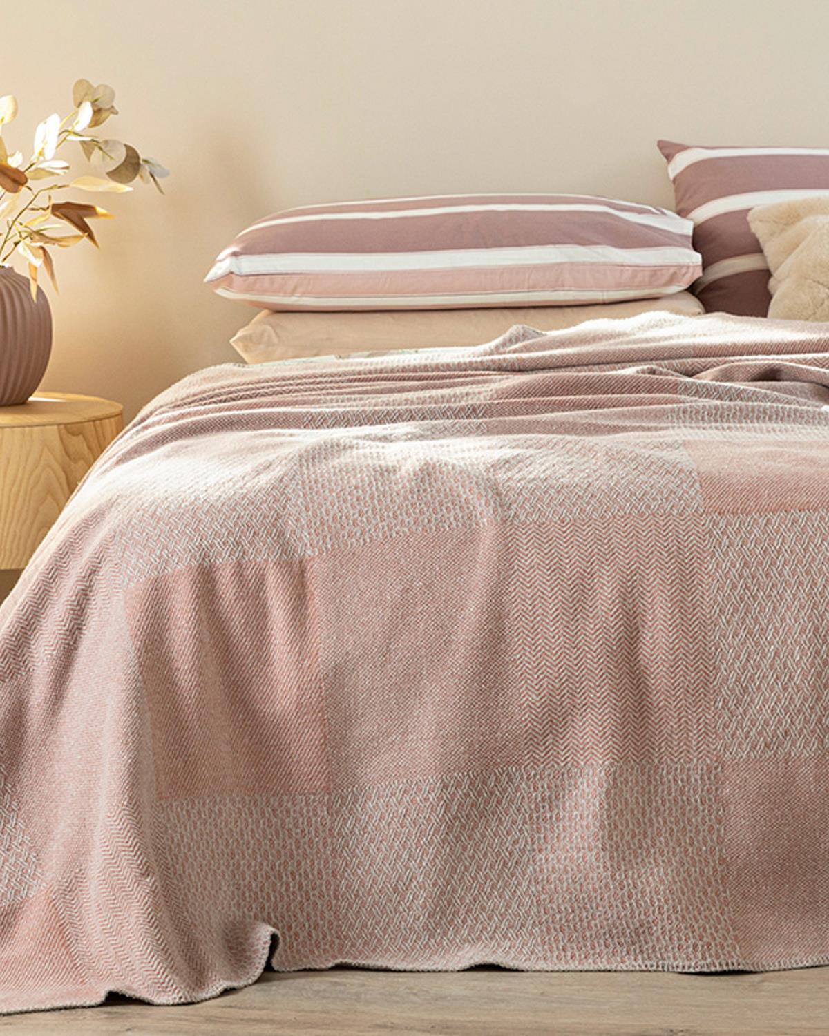 Modern Patch Cu Bumbac Single Pătură 150x200 cm Pudră (000000010032803005)