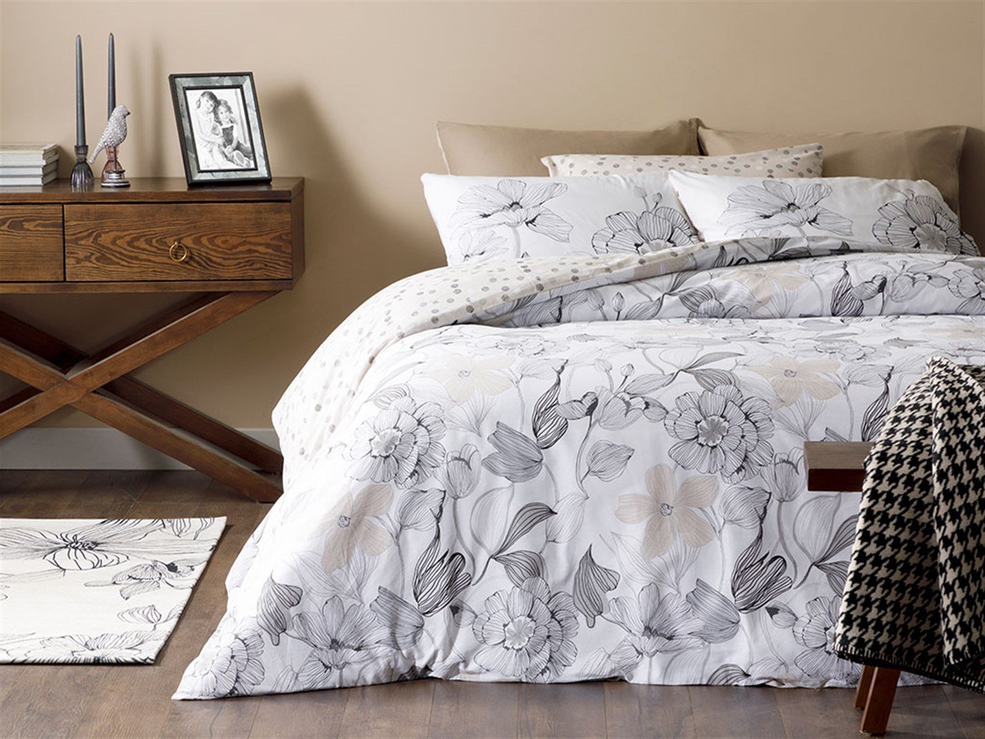 Monochrome Cu Bumbac King Size Set Lenjerie De Pat 240x220 cm Negru - Alb (000000010029733003)