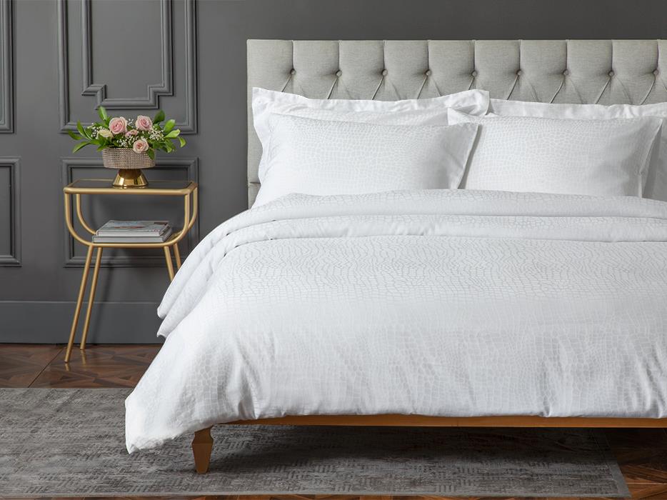 natură Jacquard Bumbac Satinat Set Lenjerie De Pat 160x220 cm Alb (000000010030721001)