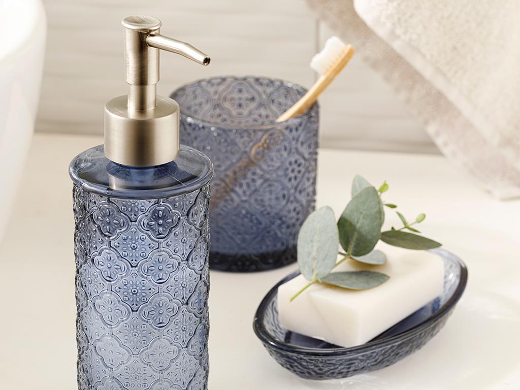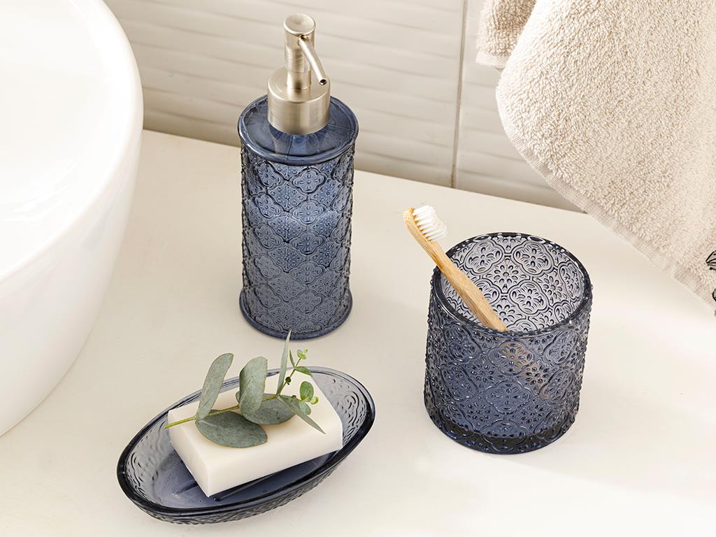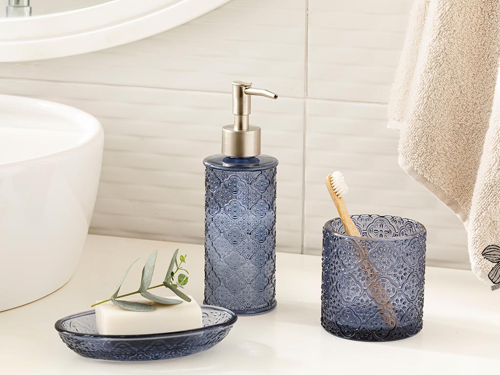 Natura albastră Sticlă Cu 3 Piese Set De Baie 6.5x6.5x18.5cm 10x10x11cm 9x13 Albastru (000000010029989001)