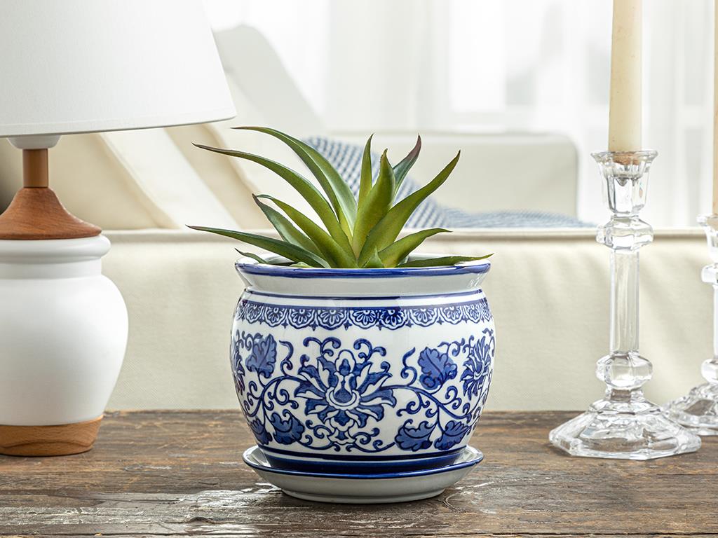 Nelson Porțelan Ghiveci De Flori 16x16x11.5 cm Albastru - Alb (000000010034651001)