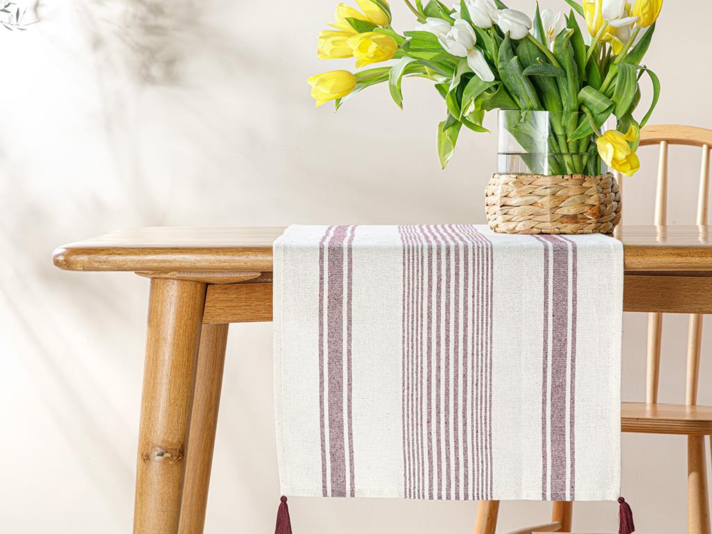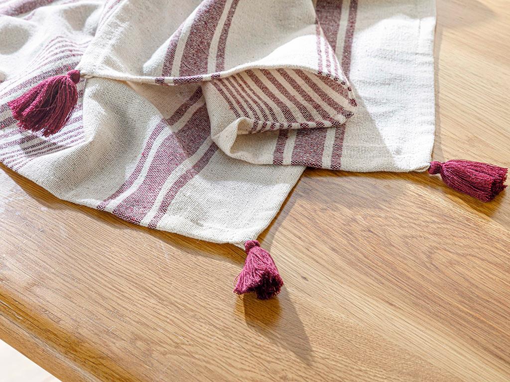 Nola Bumbac Cu Ciucuri Ștergar 40x150 cm Crem - Bordo (000000010032204002)