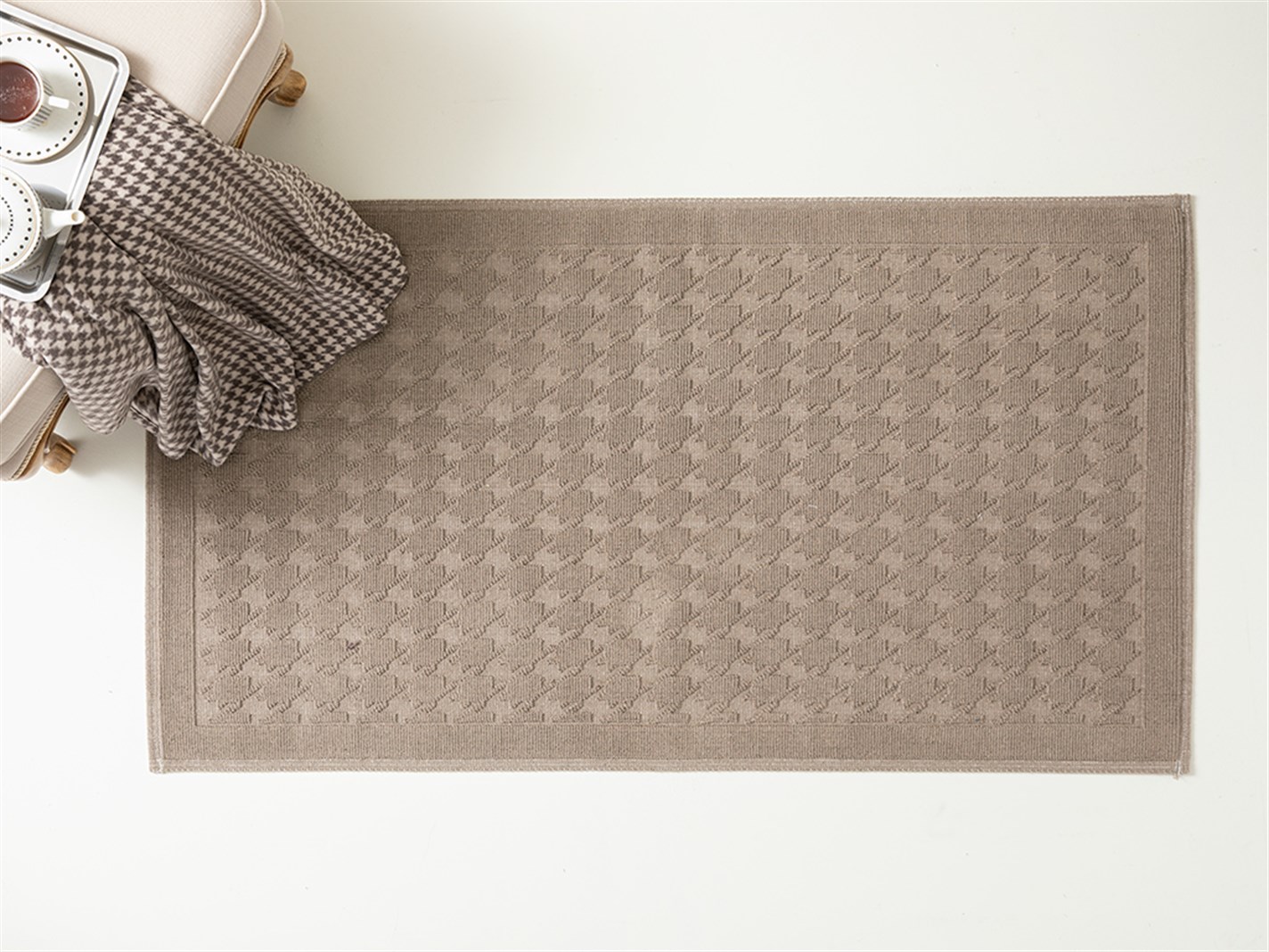 Pied de poule Bumbac Covor 80*150 Cm Bej (000000010030643011)