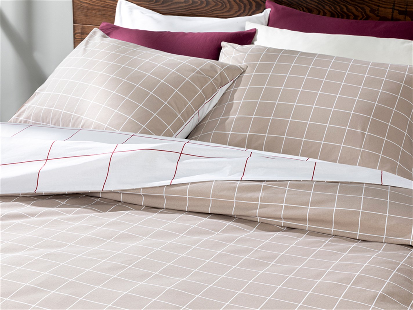 Plain Check Cu Bumbac Single Set Lenjerie De Pat 160x220 cm Bej (000000010031975005)