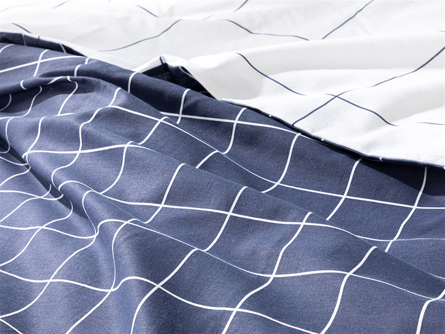 Plain Check Cu Bumbac Double Set Lenjerie De Pat 200x220 cm Bleumarin (000000010031975002)