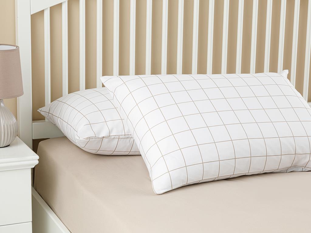 Plain Check Kombin Cu Bumbac Cu 2 Piese Față De Pernă 50x70 cm Alb - Bej (000000010032026002)