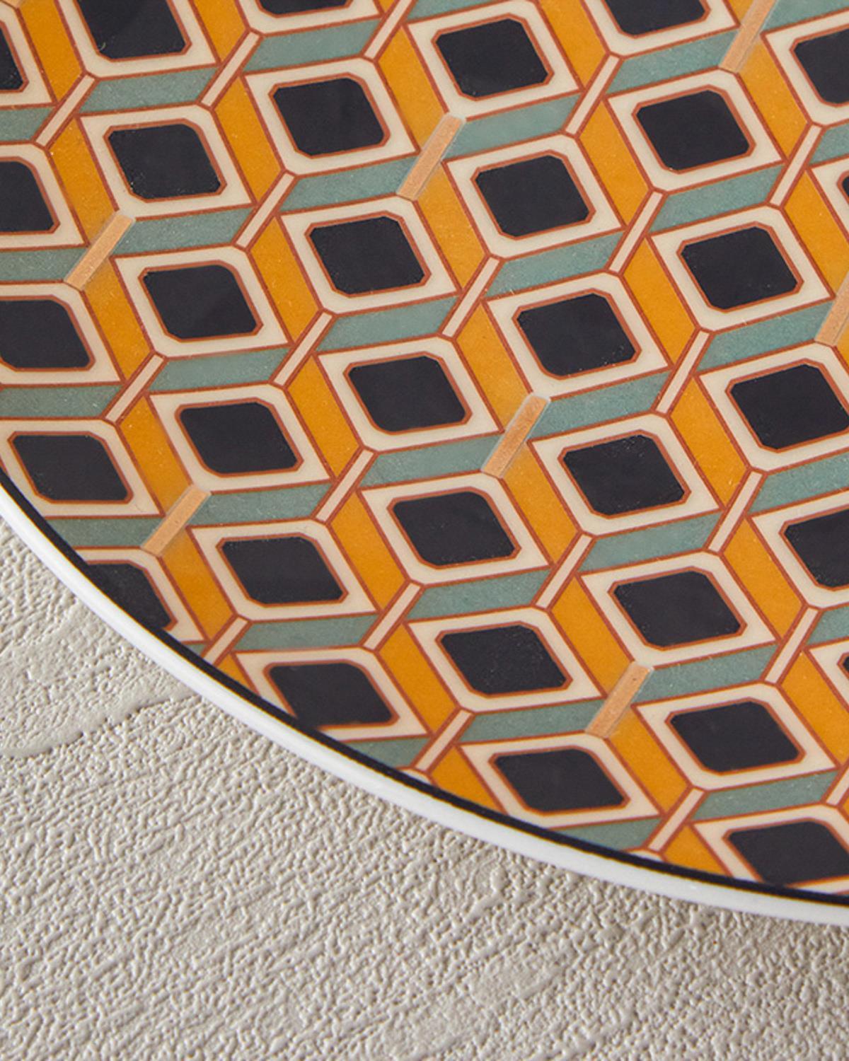 Modern Cube Porțelan Bone Farfurie De Tort 20 cm Galben (000000010041244003)