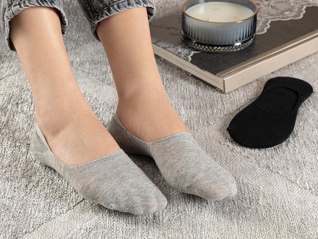 Șosete tălpici, damă, 2 perechi, Regular, bumbac-poliamidă-elastan, mărimea, Standart, negru - gri (000000010031514004)
