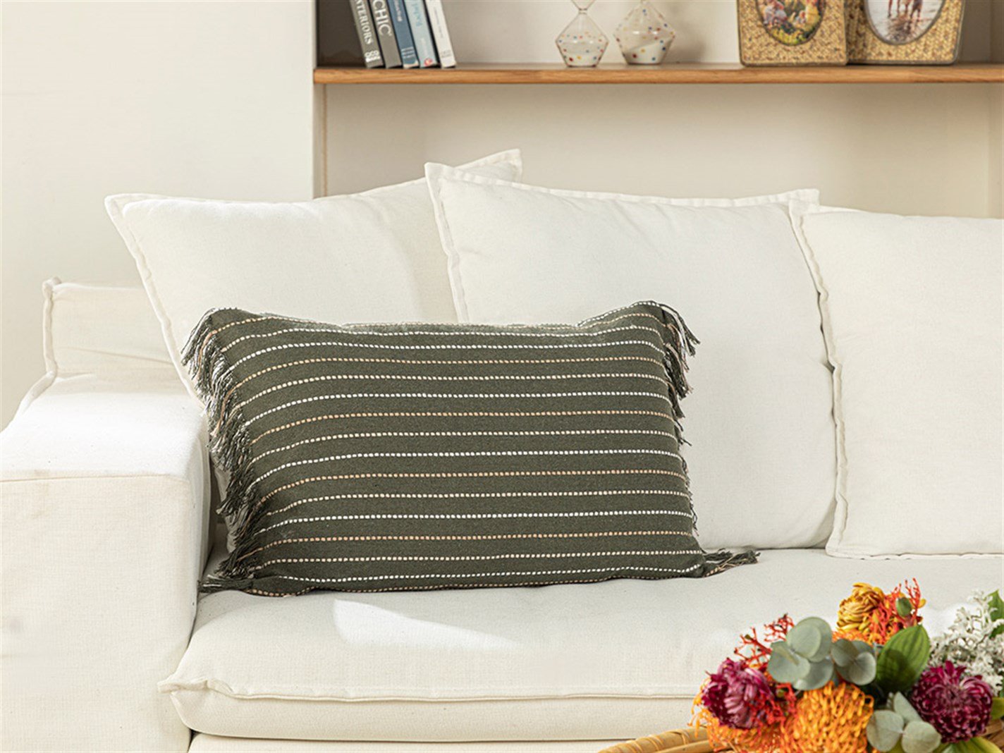 Reverie Bumbac  Țesut  PERNUȚĂ UMPLUTĂ 35x50 cm Khaki (000000010033793002)
