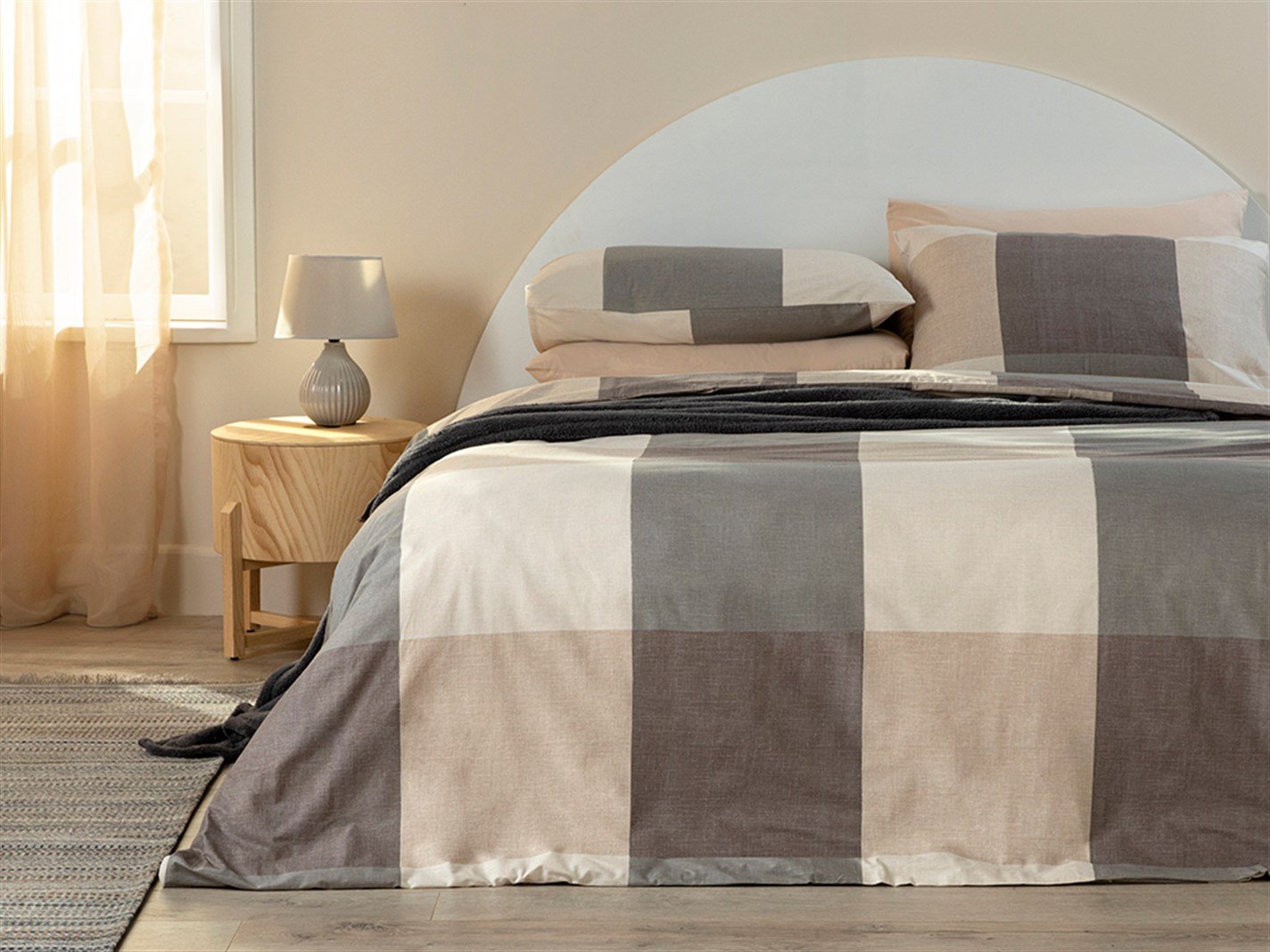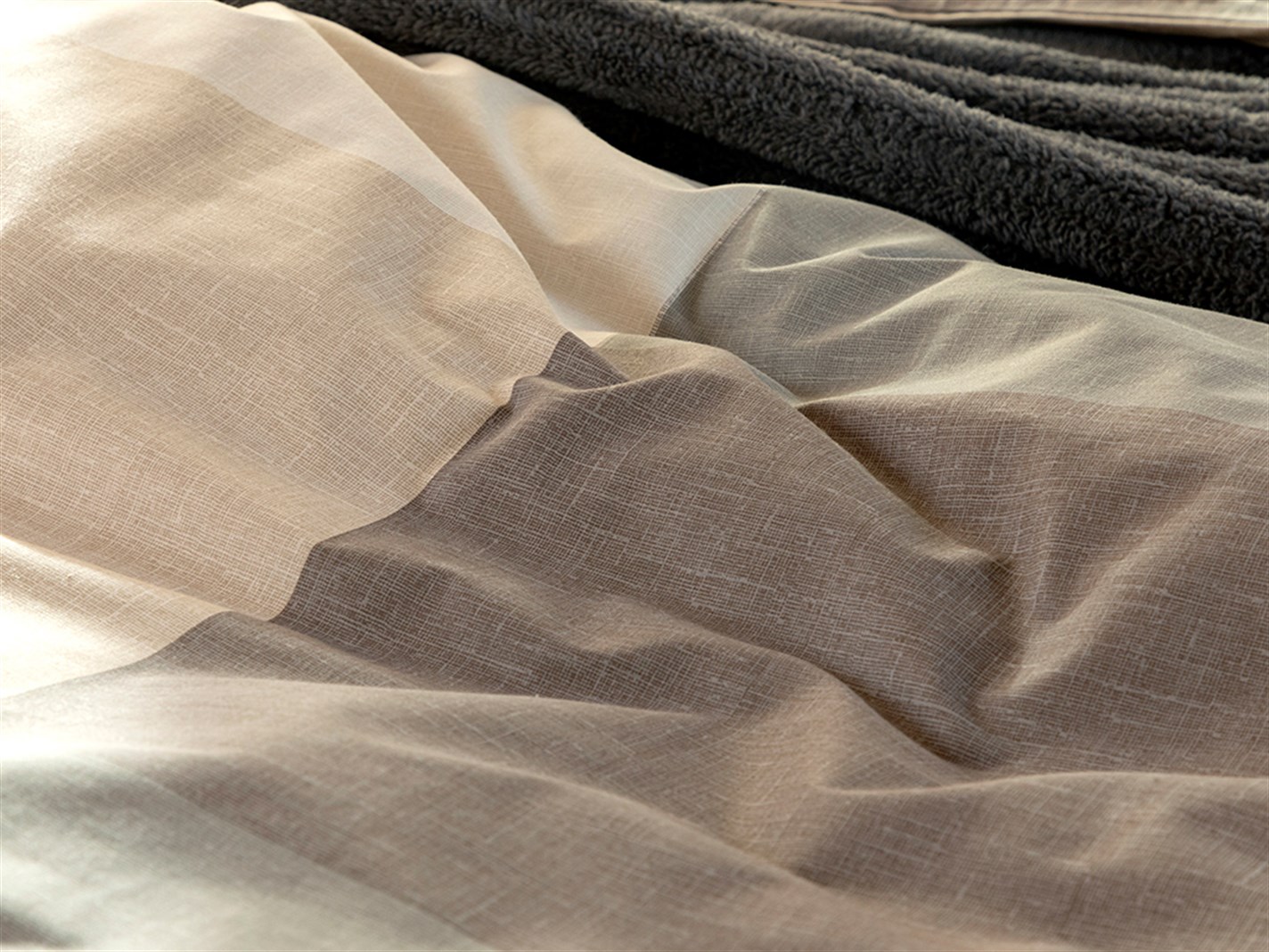 Textured Plaid Cu Bumbac Double Set Lenjerie De Pat 200x220 cm Bej (000000010033024006)