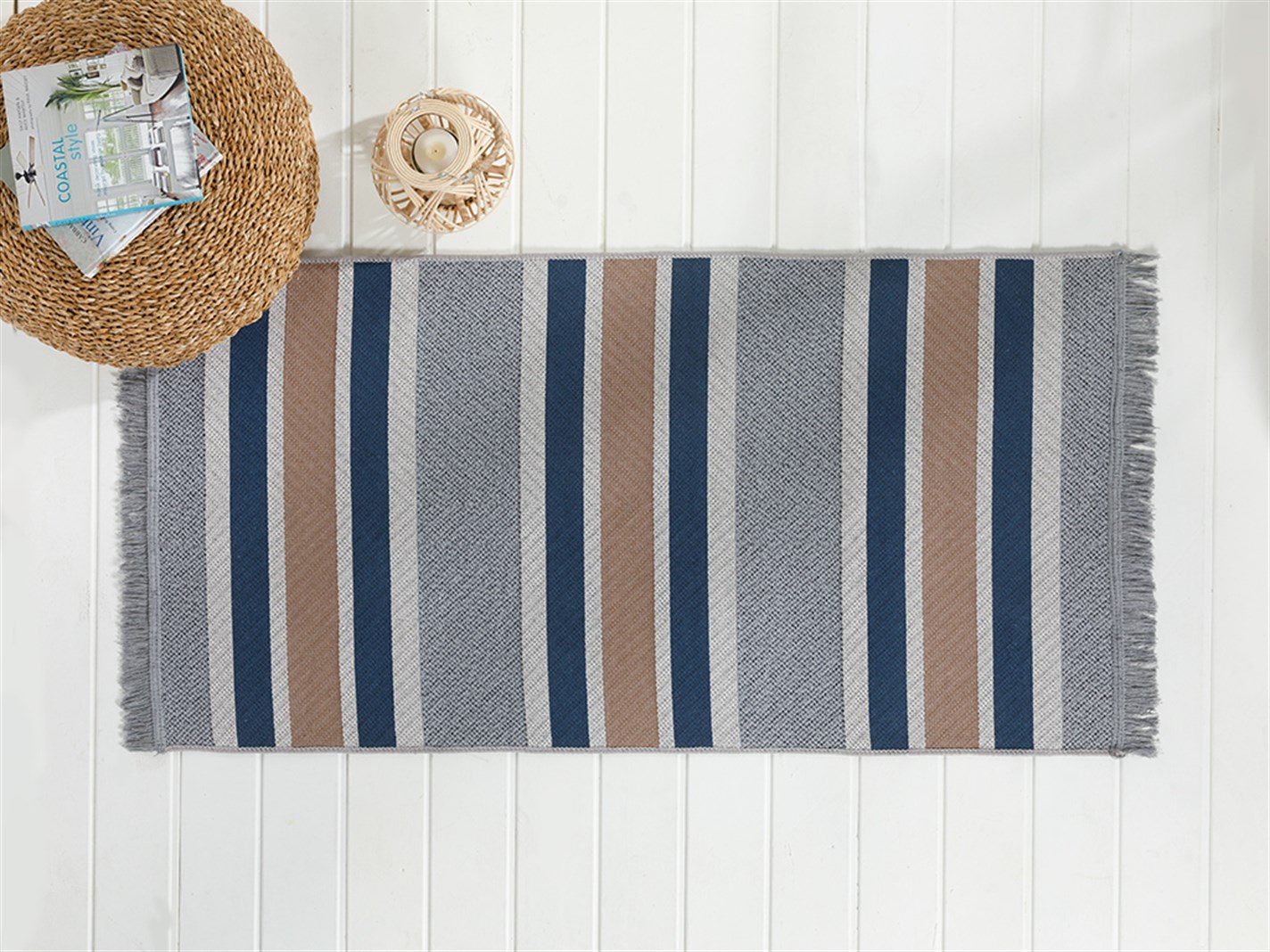 Timeless Stripe Țesătură Cu Două Fețe Pled 120x180 cm Maro - Bleumarin (000000010031625003)