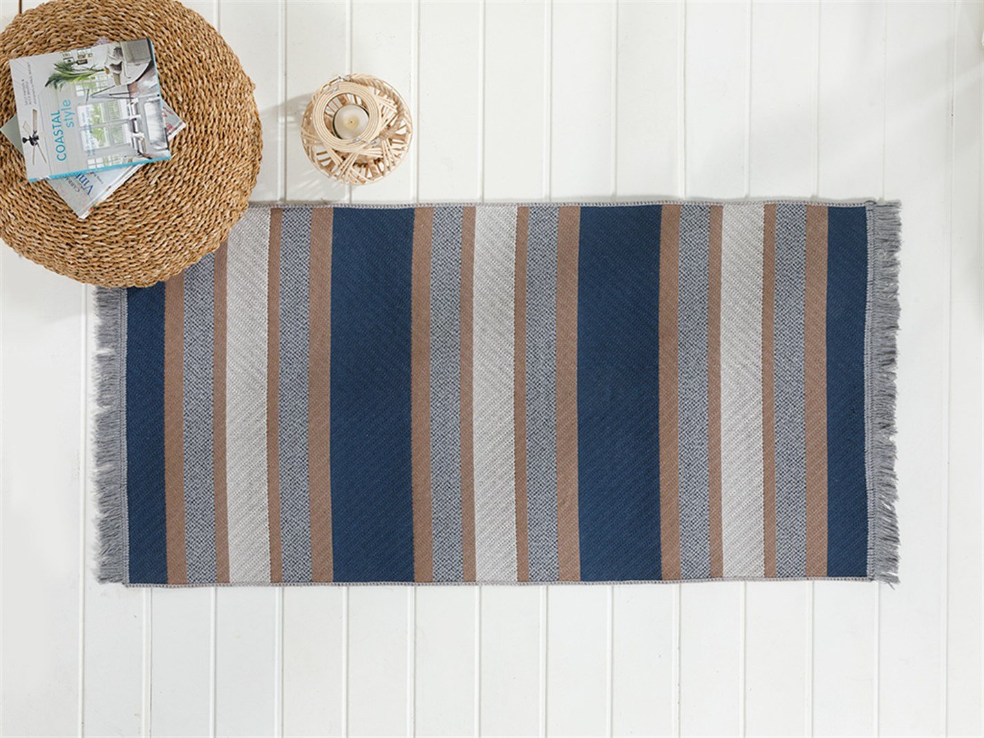 Timeless Stripe Țesătură Cu Două Fețe Pled 80x150 cm Maro - Bleumarin (000000010031625004)