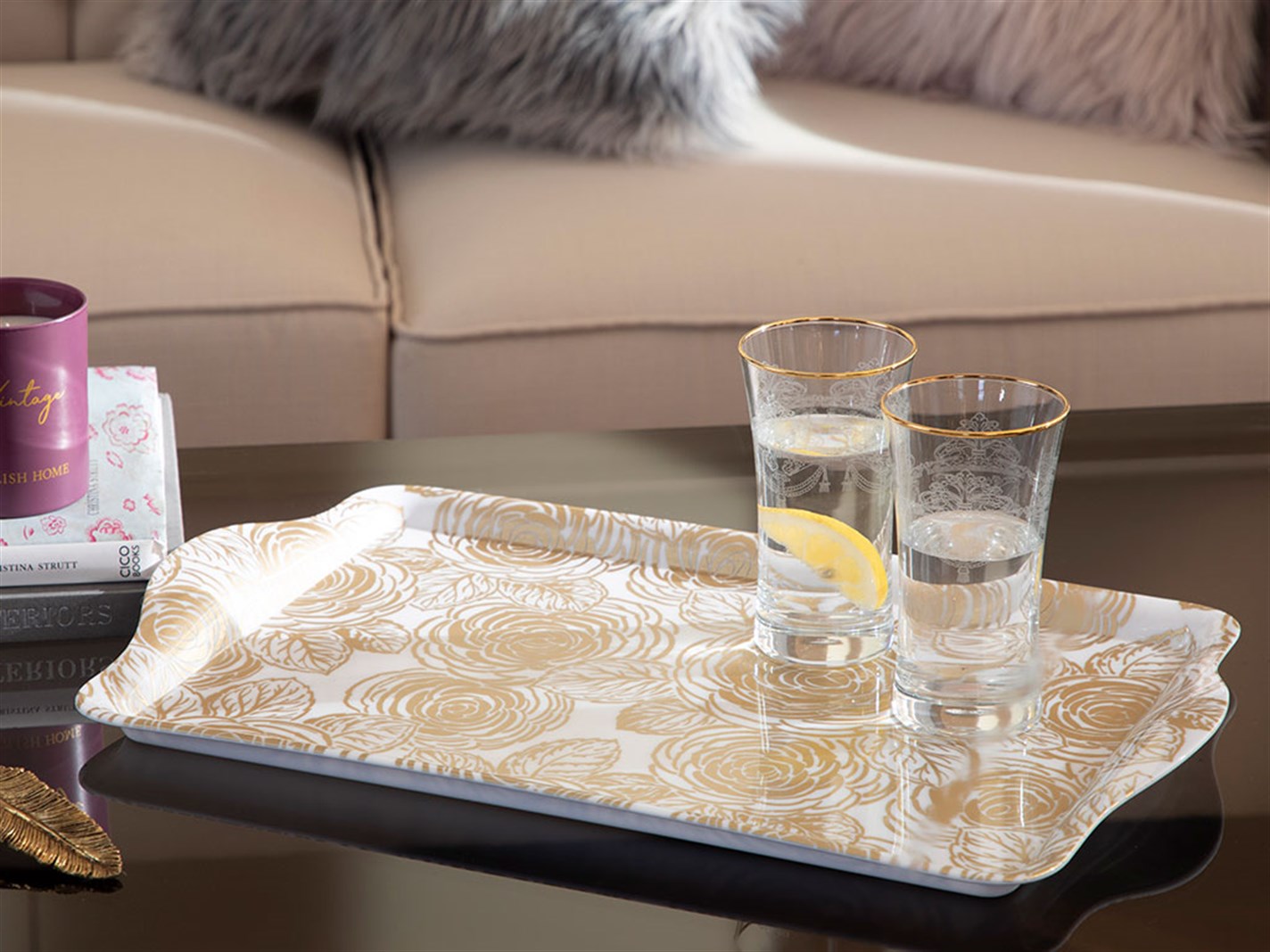 Trandafir chic Tavă 46x29 cm Alb (000000010029758003)